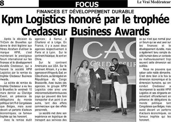 KPM Logistics honoré par le trophée Credassur Business Awards.